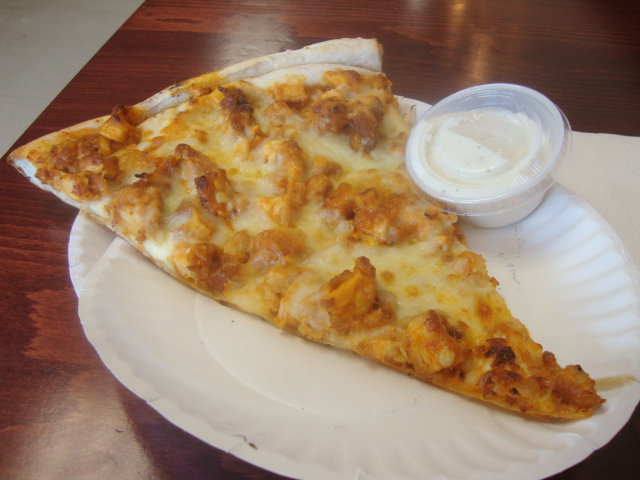 Lunch was a slice of buffalo chicken pizza.