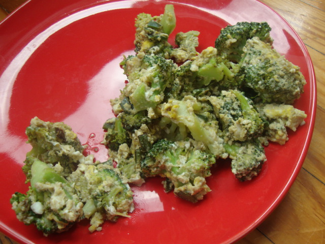 Brunch was a veggie scramble. I cooked chopped poblano and broccoli into four eggs (split between the two of us).