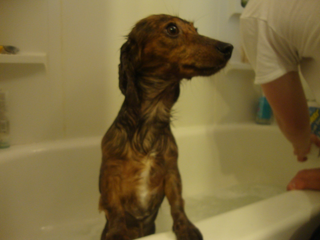 I hopped out and walked him the rest of the way and he felt fine by the time we got home. He wasn’t too keen on the bath that followed though.