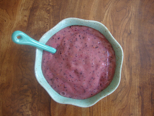 I food-processed 1 large frozen banana with 1/2 cup each fresh blueberries and raspberries. It was perfectly tart and sweet.