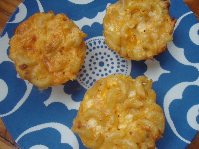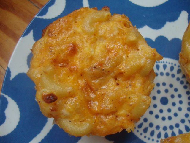 4. Portion macaroni mixture evenly into the 12 muffin cups.  Bake for 30 minutes.