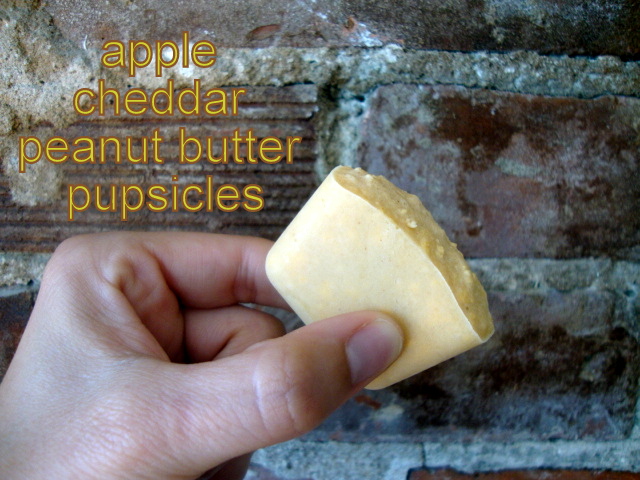 Apple Cheddar Peanut Butter Pupsicles; yields 20 frozen treats