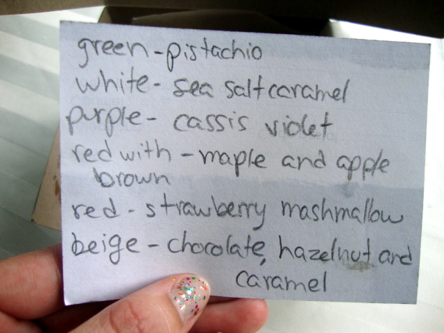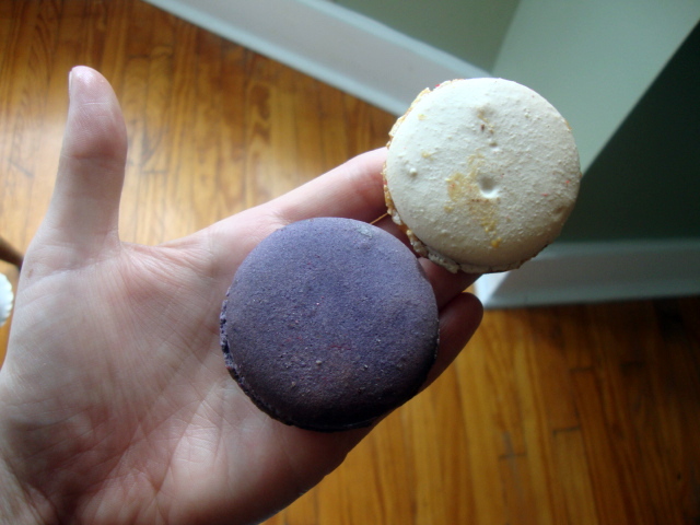 Macarons! I’ve wanted try a real macaron for forever (real as in not my good but nontraditional coconut attempt) and I squealed with delight when I opened this box.