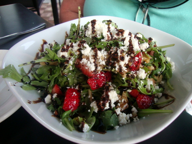 Arugula, strawberries, feta, walnuts, blush wine vinaigrette, and a balsamic reduction.