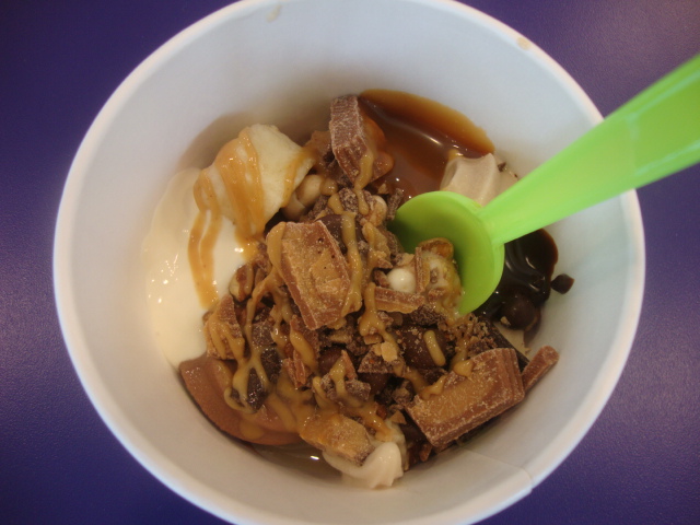 Self-serve for the win. I did a mix of desserty flavors topped with all of the chocolate, peanut butter, and caramel things.