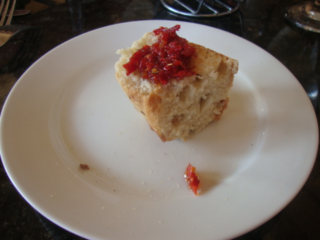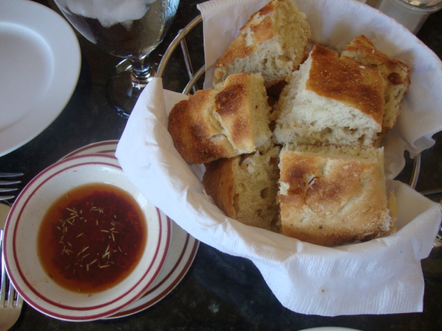 They gave us delicious bread with sun-dried tomato oil for dipping. My piece, x2.