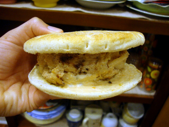 and a leftover Reuben Stuffed Turkey Burger on a Sandwich Thin with 1000 island dressing.