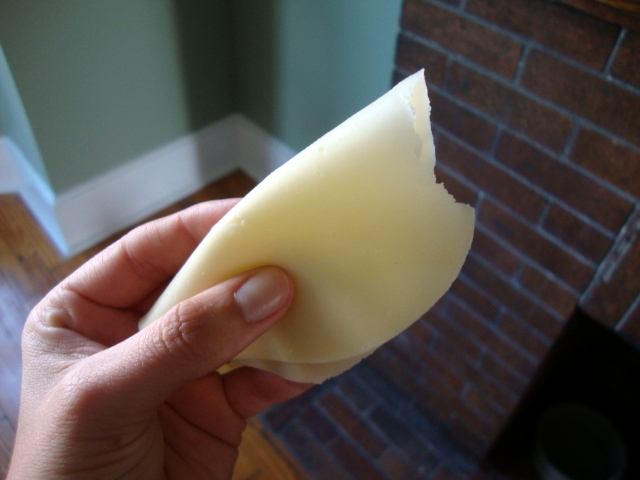 I did some printing and ran an errand on Elmwood and now I’m settled at home. We are eating dinner early tonight (I’m submitting my post to something so I’m crossing my fingers for semi-decent pictures) but I did have a few snacks. A slice of 2% provolone cheese,