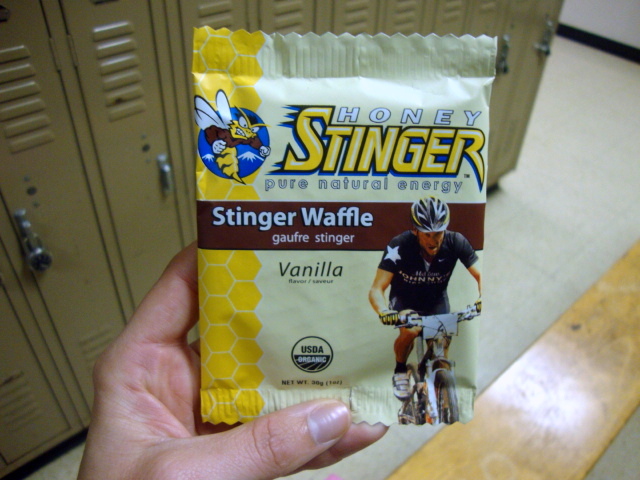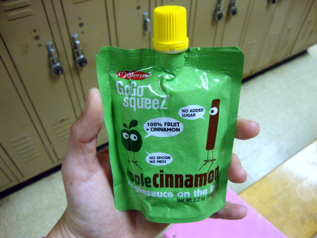 Food at the hospital. GoGo Squeez cinnamon applesauce packet and a vanilla Stinger waffle.