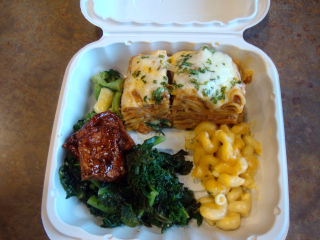 Adam and I split this plate of carbs and veggies (lasagna, mac and cheese, kale, tofu, and broccoli).