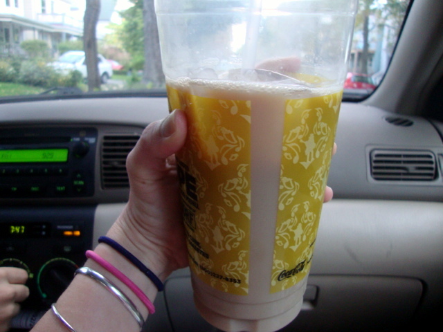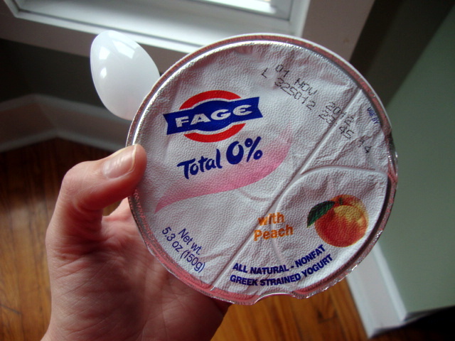 From my trip to the gym, I came back short on time. Thank goodness Adam had the day off yesterday; he drove me to school and packed my breakfast. FNCE expo samples were heavily featured. An iced coffee with skim milk.