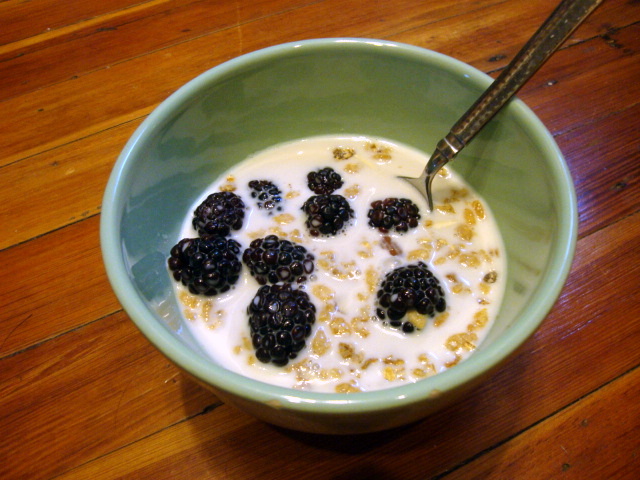 When I got home I had a serving of Cascadian Farms Dark Chocolate Almond Granola with Blue Diamond Almond/Coconut Milk and fresh blackberries.