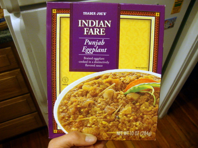 A microwaveable Punjab Eggplant dish from Trader Joe’s (I ate the whole package),