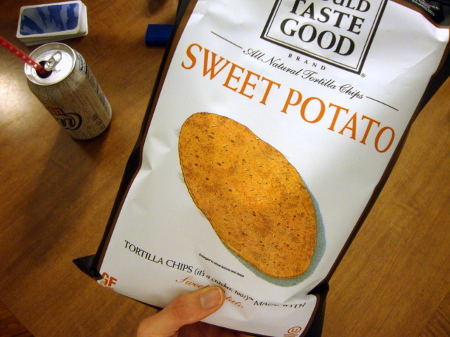 And the tie-breaker (Adam won!) was 2 servings of Sweet Potato Chips from Food Should Taste Good.