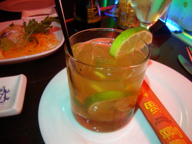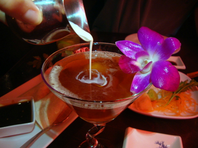 and a Thai tea-ni, tea infused vodka, vanilla vodka, sweetened Thai tea, and milk.