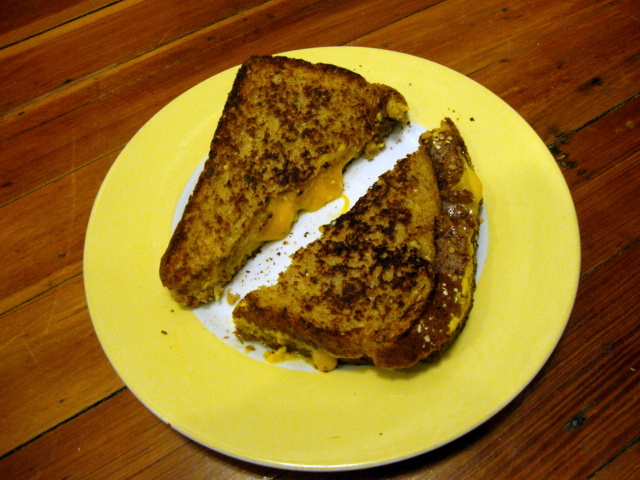 …skipping dinner until later because it ties into the giveaway… We were still hungry after our early dinner, so we split a grilled cheese.