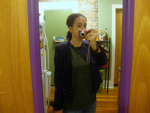 Next, I finally figured out what to call my favorite look – aka one of Adam’s shirts with a nice blazer and too much eyeliner – “walk of shame chic!”