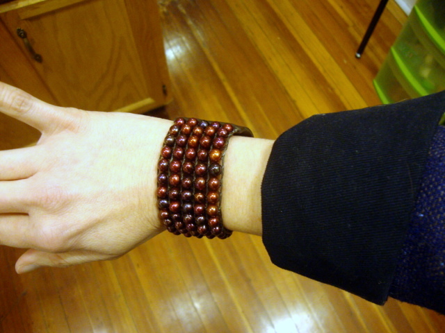 I just wanted to share a few fashion notes from today. First, check out my two new bracelets! This one my dad bought me in Miami.