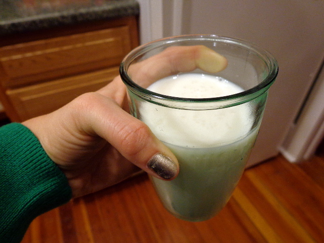 A big glass of Lifeway Lowfat Coconut Chia Kefir.