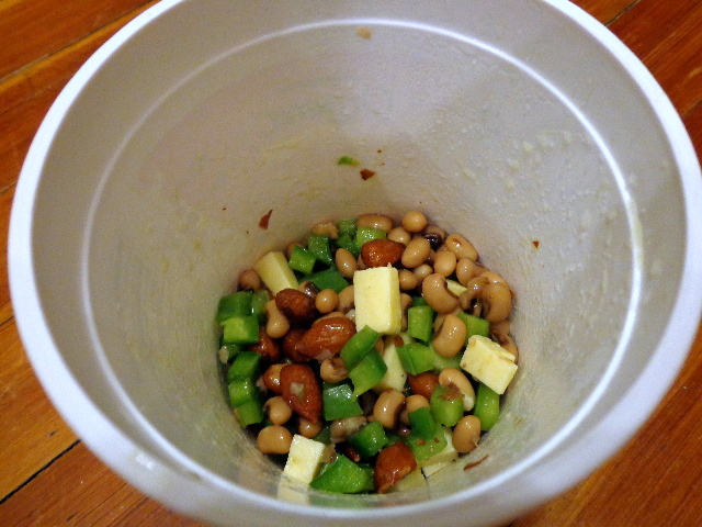I clearly didn’t eat breakfast, but I did manage to grab my packed lunch out of the fridge. More black-eyed pea salad.