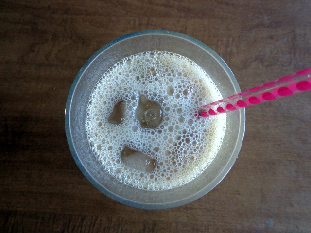 Iced coffee with Silk Unsweetened Vanilla Almond Milk and sugar.