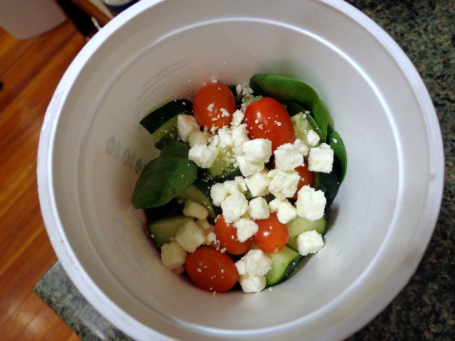 Lunch was salad leftovers. When I made our dinners last night I went ahead and made four bowls at once – his & hers lunch and dinner.