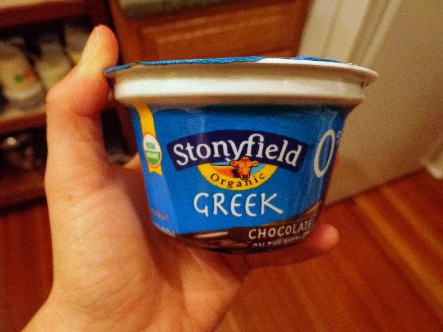 I mixed things up and packed breakfast this morning. Stonyfield Chocolate Greek Yogurt.