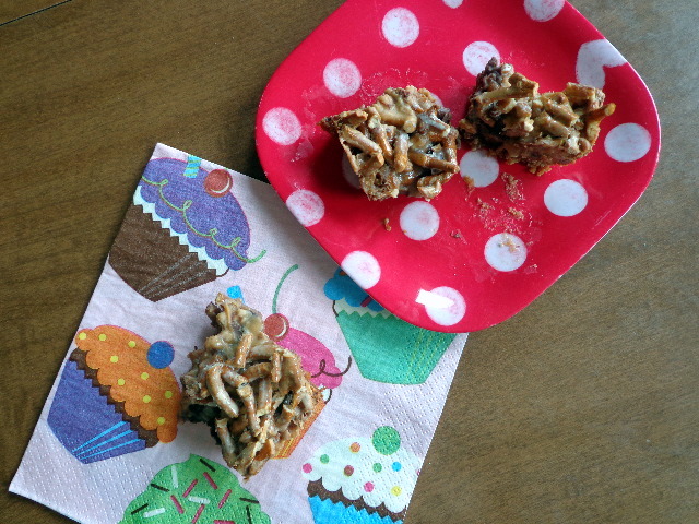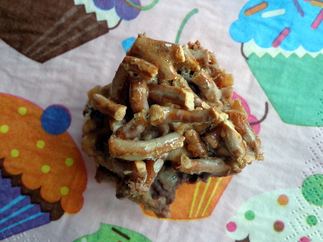 - 1 and 1/4 cup crunched salted, thins-style pretzels