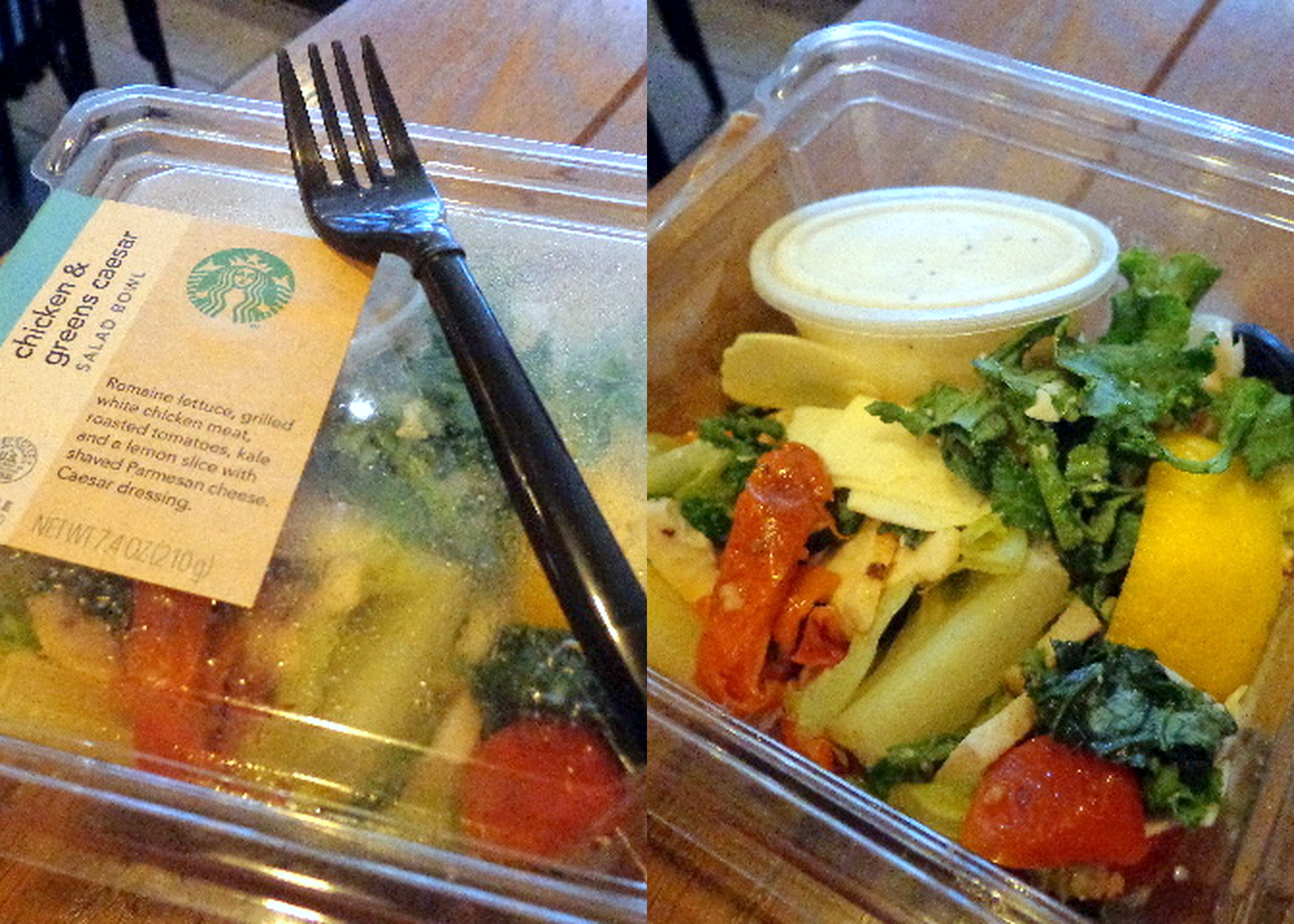 {A} Other than the high saturated fat (5 grams) the nutritional stats were pretty good (19 grams of protein, 340 calories including dressing) and the lettuce was nice and fresh.