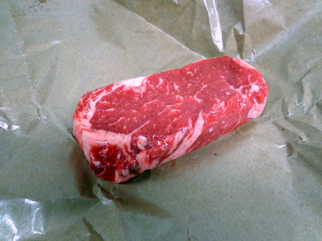 He and Adam split a (grass-feed, very expensive, awesomely marbled) steak.