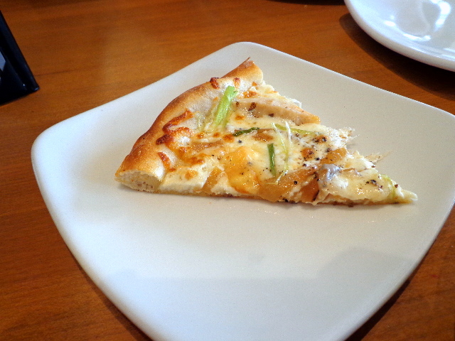 Adam, ever the traditionalist, shared a slice of his Roasted Garlic and Chicken Pizza with me. The pizza was yummy, but I went with a salad.