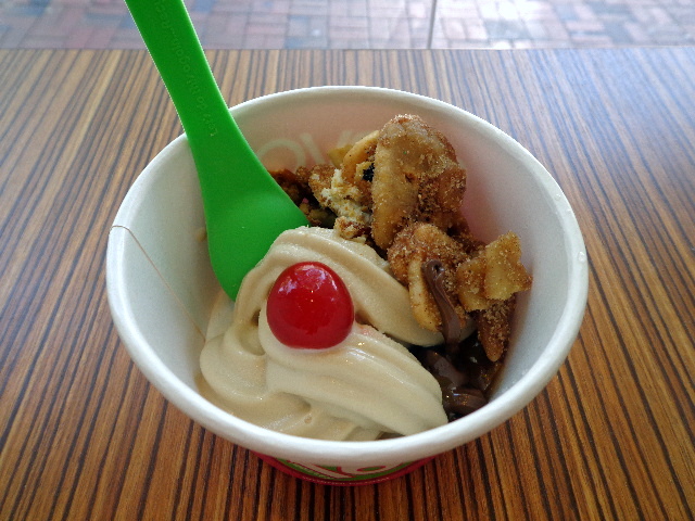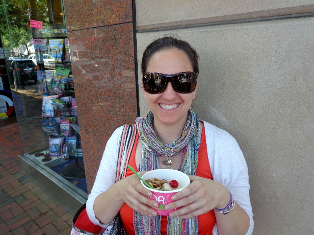 I got pecan praline yogurt (!!!) topped with Coney Island Crunch trail mix and bananas foster banana chips! Re-dic-u-lous.