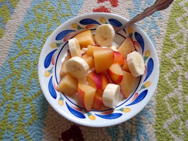 Chobani 2% Apricot Greek Yogurt topped with sliced banana and red plum. Not only did a find a few good, new flavors of yogurt while in Ohio, but these plums were the best (read: juicy without being drippy and nice and sweet) I’ve ever had. The apricot flavored Chobani was nice as well.
