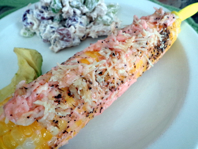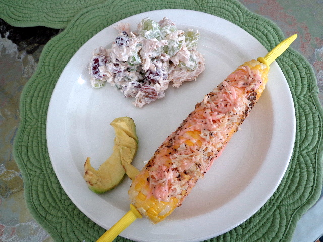 A bit of avocado, a cob of my spicy, cheesy baked corn,