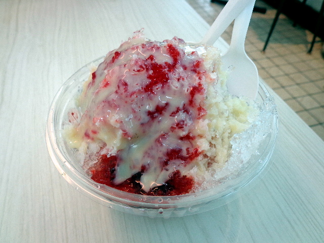 We split a Pat Bing Soo with red bean and strawberry jelly.
