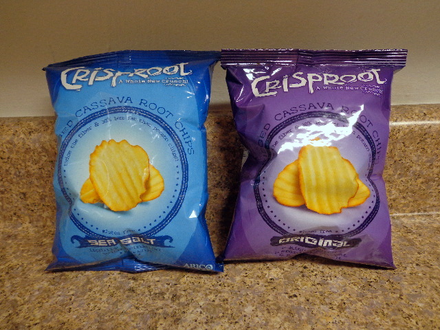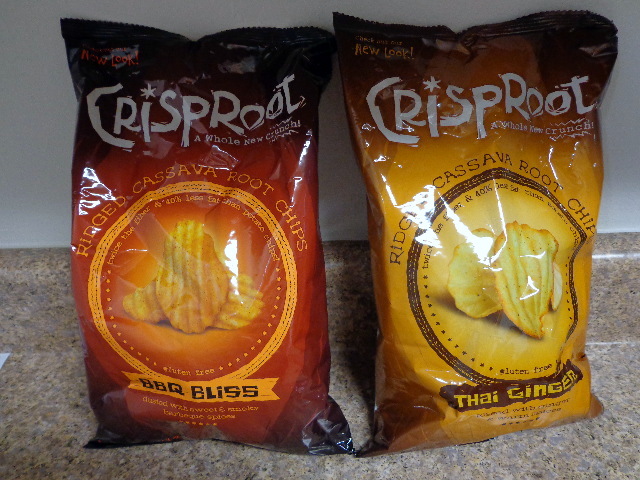 CrispRoot is a company that makes ridged cassava root chips. They come in Sea Salt, Original, BBQ Bliss, and Thai Ginger. All of the flavors are dairy- and gluten-free, contain no trans fat, have 150 kcals and 6-7 gram saturated fat per serving, and have 2x the fiber and 30% less fat than most potato chips.