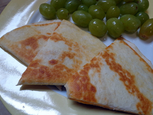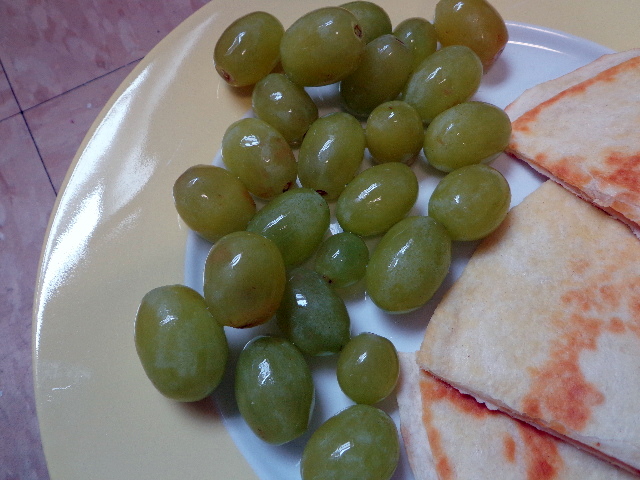 {2} Super exciting cotton candy grapes with a boring cheese quesadilla.