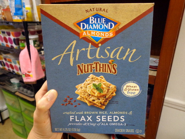 Blue Diamond Flax Artisan Nut Thins (former freebie) with extra-sharp New York cheddar melted on top.  Note – the flax ended up being our favorite variety the nut thins by far.  It had a great saltiness to it.  I don’t have a single picture because every damn time I made this I was blown away by how molten hot our new microwave makes our plates.