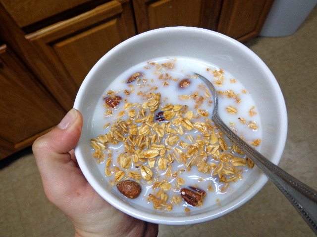 Food Emporium Trading Company Vanilla Granola with Almonds and Pecans in skim milk.