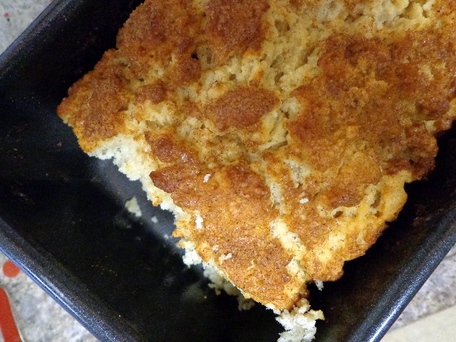 Just Beer Bread made with a pumpkin beer and a layer of cinnamon sugar (we used cinnamon maple sugar) on top.