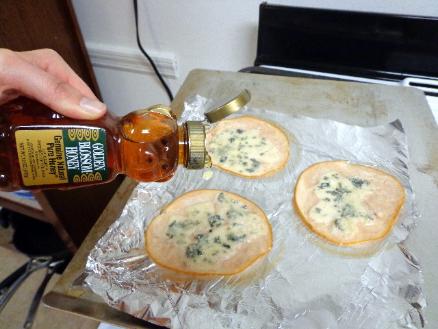 DSC05723Classed up with crumbled blue cheese and a drizzle of honey when they came out of the oven.