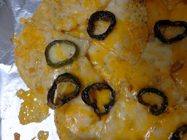 …Ate lots and lots of cheese. We were shopping in Trader Joe’s one evening when the idea for nachos struck and our eyes lit up. We got Wisconsin Sharp and New York Extra Extra Sharp Cheddars so we could do a blend.