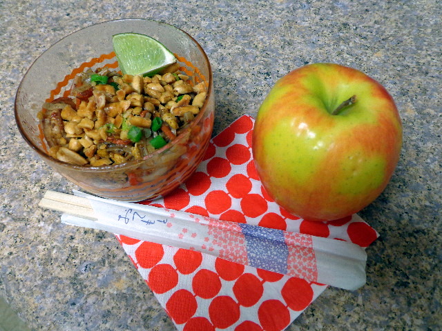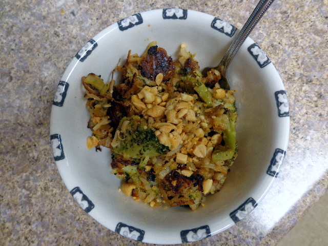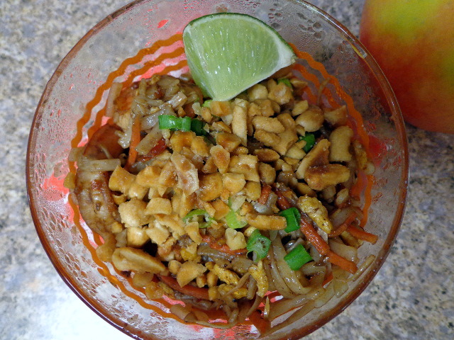 Last night’s dinner was rice noodles with bean sprouts and tons of broccoli cooked in peanut sauce.