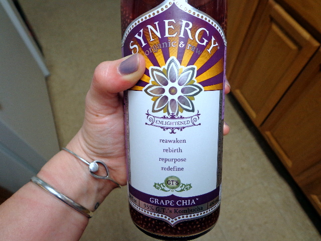 and a GT’s Synergy Grape Chia Kombucha.