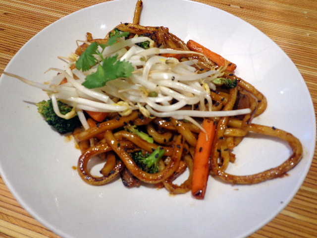 I got the Japanese pan noodles – caramelized udon noodles in a sweet soy sauce, broccoli, carrots, shiitake mushrooms, Asian sprouts, black sesame and cilantro.