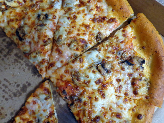 Pizza on Saturday. My half was topped with mushroom.