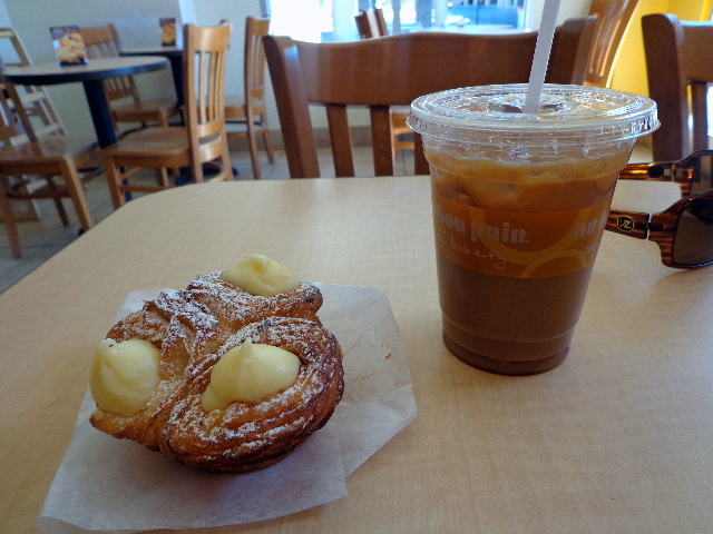 Coffee – a skim, iced Caffé Viennese – and a Sweet Cheese CroisBun, aka their new croissant and sweet bun hybrid.