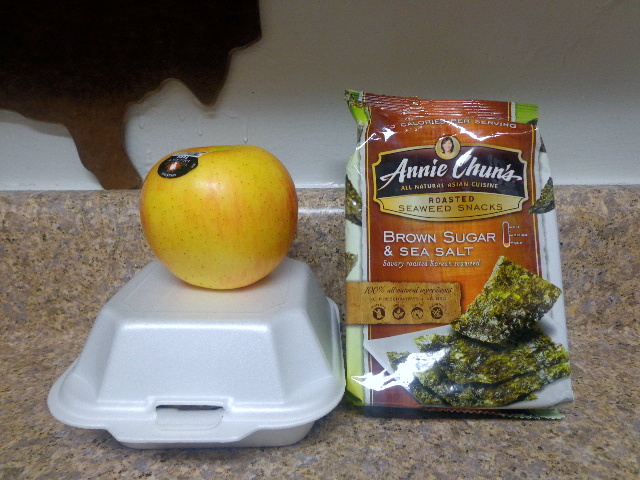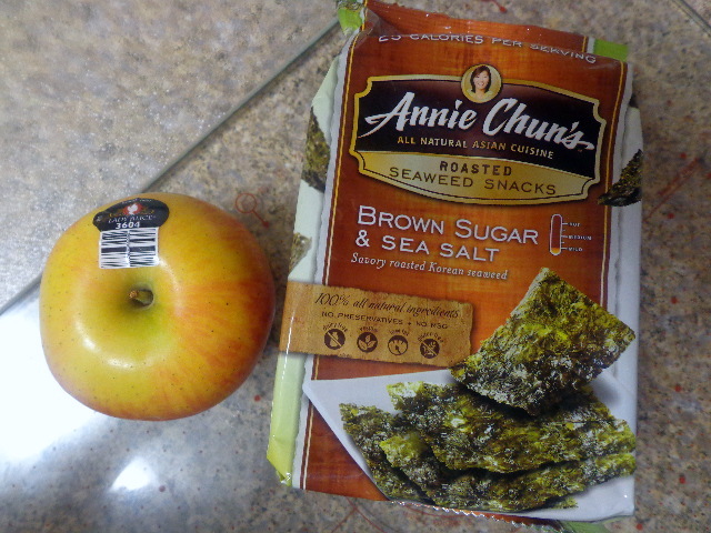With Brown Sugar Sea Salt Seaweed Snacks and a Lady Alice apple.