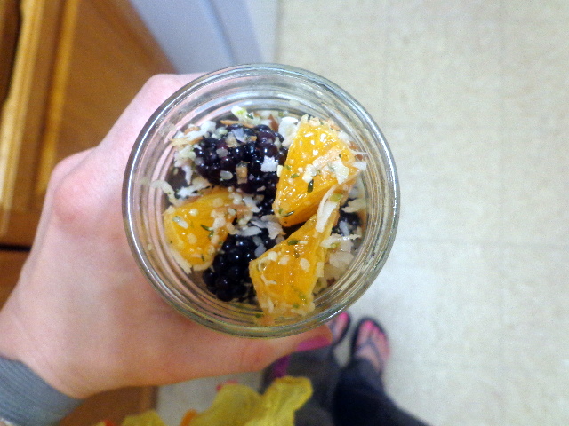 This salad was insane and I need to make it again immediately. Blackberries, minneola, lime juice/zest, maple syrup, toasted coconut, and hemp hearts.