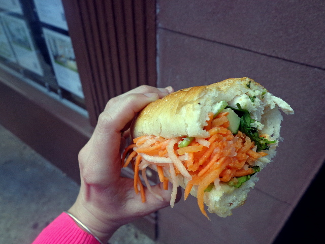 Adam had resisted joining me for Bahn Mi for weeks, but now that he’s tasted it he is completely obsessed. You just cannot beat Srircha, mayo, and pickled veggies on that crusty French bread.